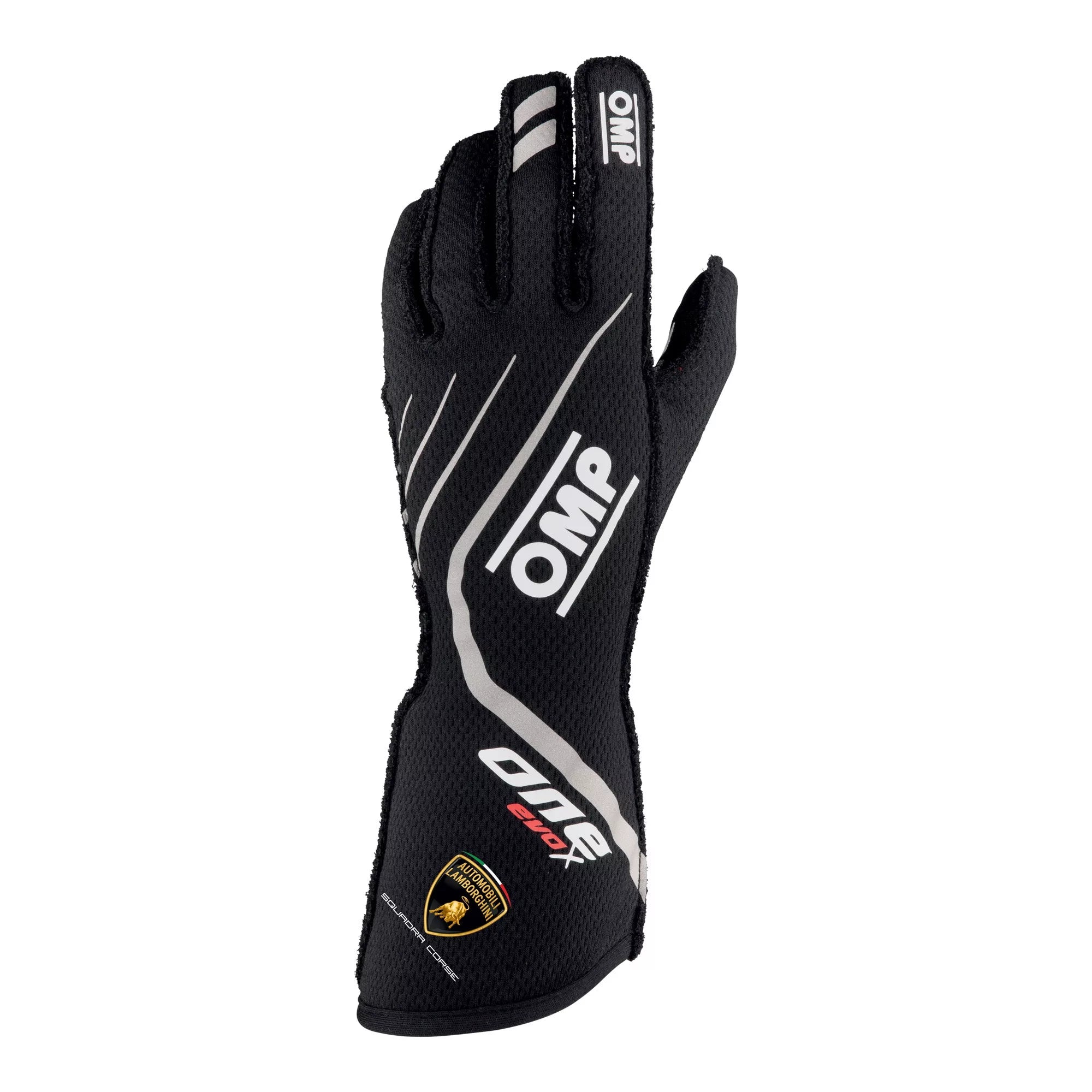The One Evo X Automobili Lamborghini is a flagship model race glove from OMP in collaboration with Automobili Lamborghini designed to provide the highest levels of comfort and performance. The pre-curved shape reduces material bunching which in turn reduces pressure points and fatigue. External seams further reduce pressure points and improve dexterity.