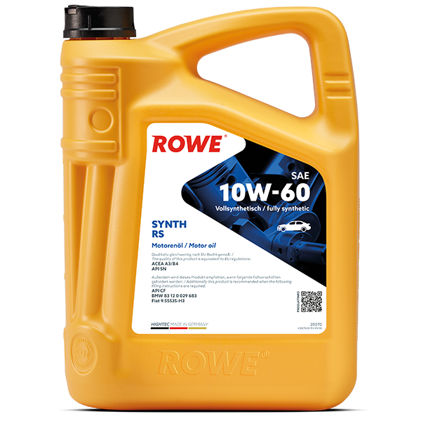 HIGHTEC SYNTH RS SAE 10W-60 is a high-performance engine oil with an optimal viscosity produced using fully synthetic poly-alpha-olefins (PAO). Its high level of performance is achieved through the interaction of these fully synthetic base oils with their naturally high viscosity index (VI) and the advanced additives. HIGHTEC SYNTH RS SAE 10W-60 exhibits a very good cold-start behaviour and fast lubrication at the lowest temperatures. At the same time, it provides a stable lubricating film for safe wear protection, even with hot oil and under excessive loads. HIGHTEC SYNTH RS SAE 10W-60 has been developed to meet the needs of modern petrol and diesel engines. It is especially recommended for a sporty driving style and when used at full power, as well as during severe weather conditions. Equivalent to EU regulations: ACEA A3/B4 API SN Recommendation: API CF. We provide a complete technical solution with the right approved/recommended lubricants for your vehicle. Raise the limit!
