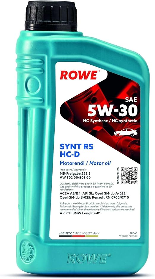 HIGHTEC SYNT RS HC-D SAE 5W-30 is a high-performance engine oil produced using HC synthetic oils with a wide area of application. Its distinguished level of performance is achieved through the interaction of selected base oils and advanced additives. It guarantees the longest maintenance intervals, optimal cold-starting properties and best wear protection for petrol and diesel engines with or without turbocharging. Hydrocracked oil with Viscosity Index of 170 & High Temperature High shear protection value of 3.5 ensures the maximum protection under the highest stress. Approvals: MB-Freigabe 229.5 VW 502 00/505 00 Equivalent to EU regulations: ACEA A3/B4 API SL Opel GM-LL-A-025 Opel GM-LL-B-025 Renault RN 0700/0710 Recommendation: API CF We provide a complete technical solution with the right approved/recommended lubricants for your vehicle