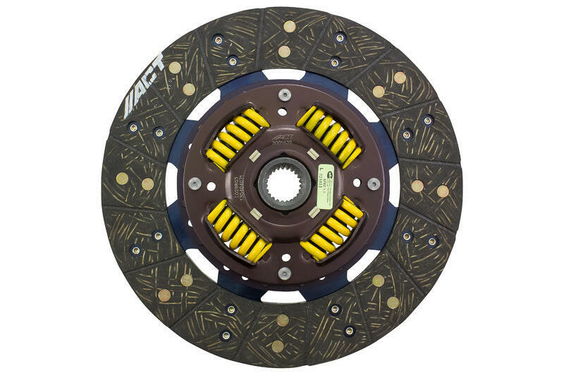 3001532 is a performance street disc and the most popular disc purchased. It features premium organic materials with high copper content for better heat transfer. Performance street discs allow for quicker shifting and smooth engagement. These discs feature a reduced marcel for faster shift action to complement ACT pressure plates. ACT spring-centered assemblies use bushings and cone springs similar to factory clutch discs. This creates frictional dampening, which improves clutch life and reduces noise. Quiet operation with increased strength and reliability.
