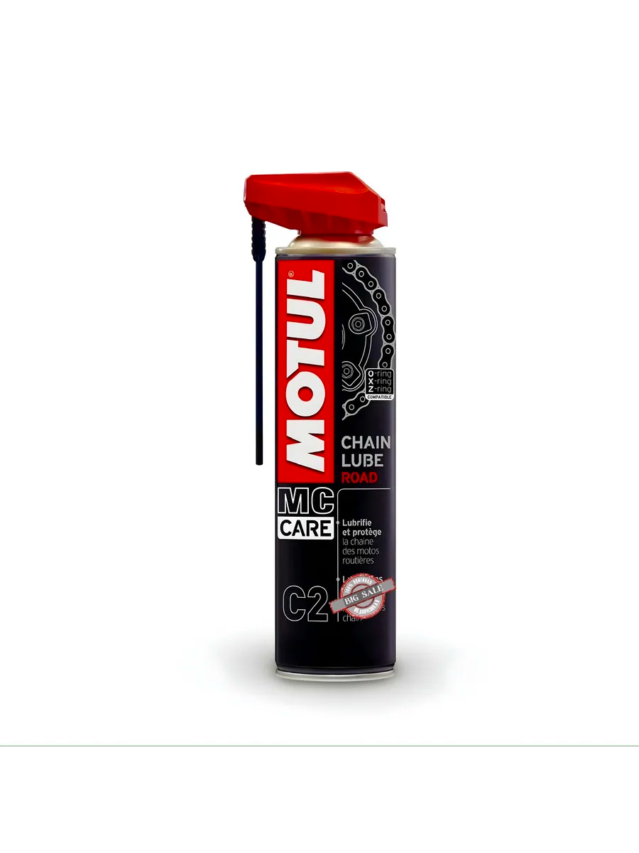 All types of chains : standard and with O-RING, X-RING, Z-RING. Street motorcycles, go-karts. Specially recommended for very fast motorcycles: MOTUL CHAIN LUBE ROAD adheres to the chain even at high speeds and high revolutions